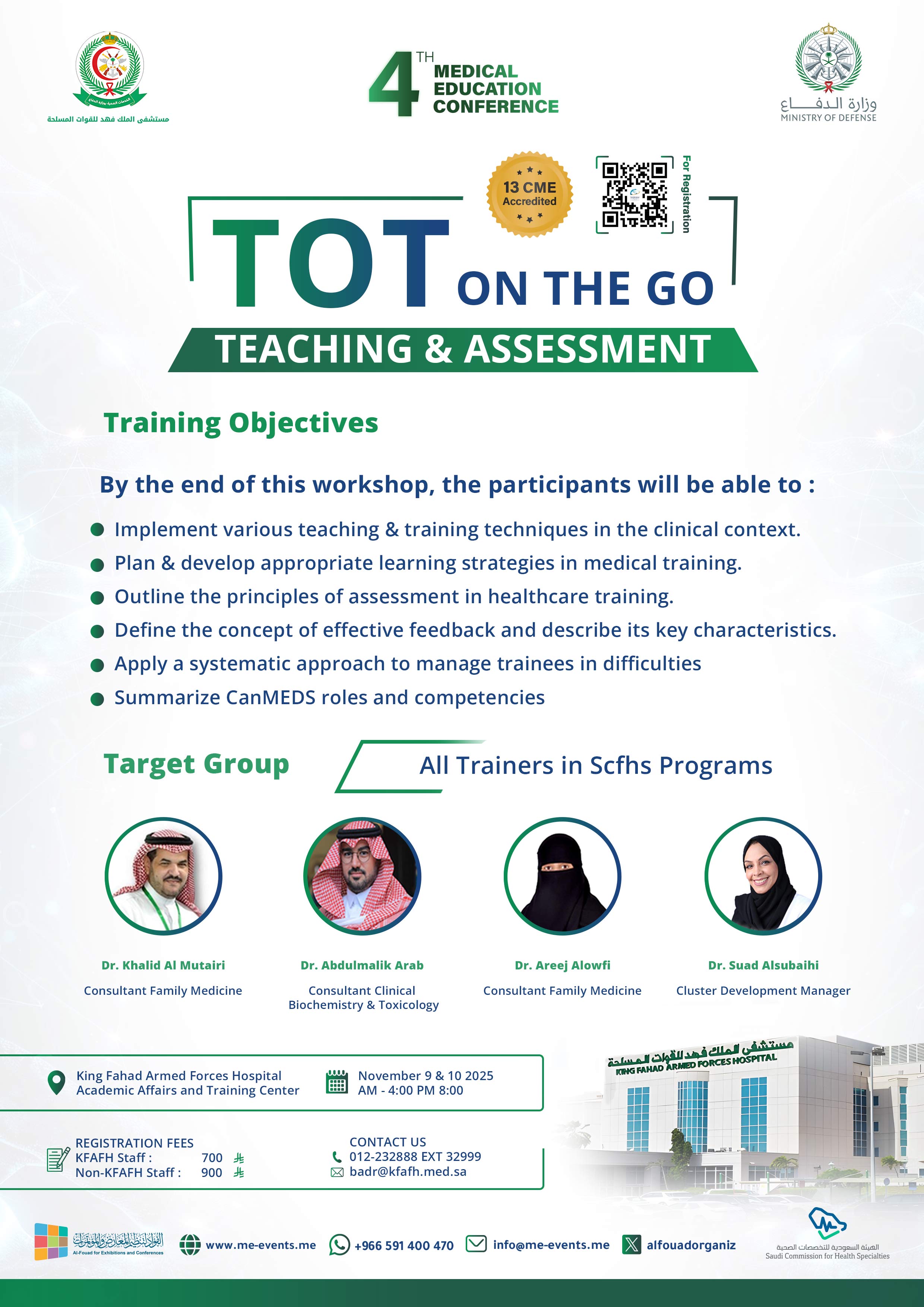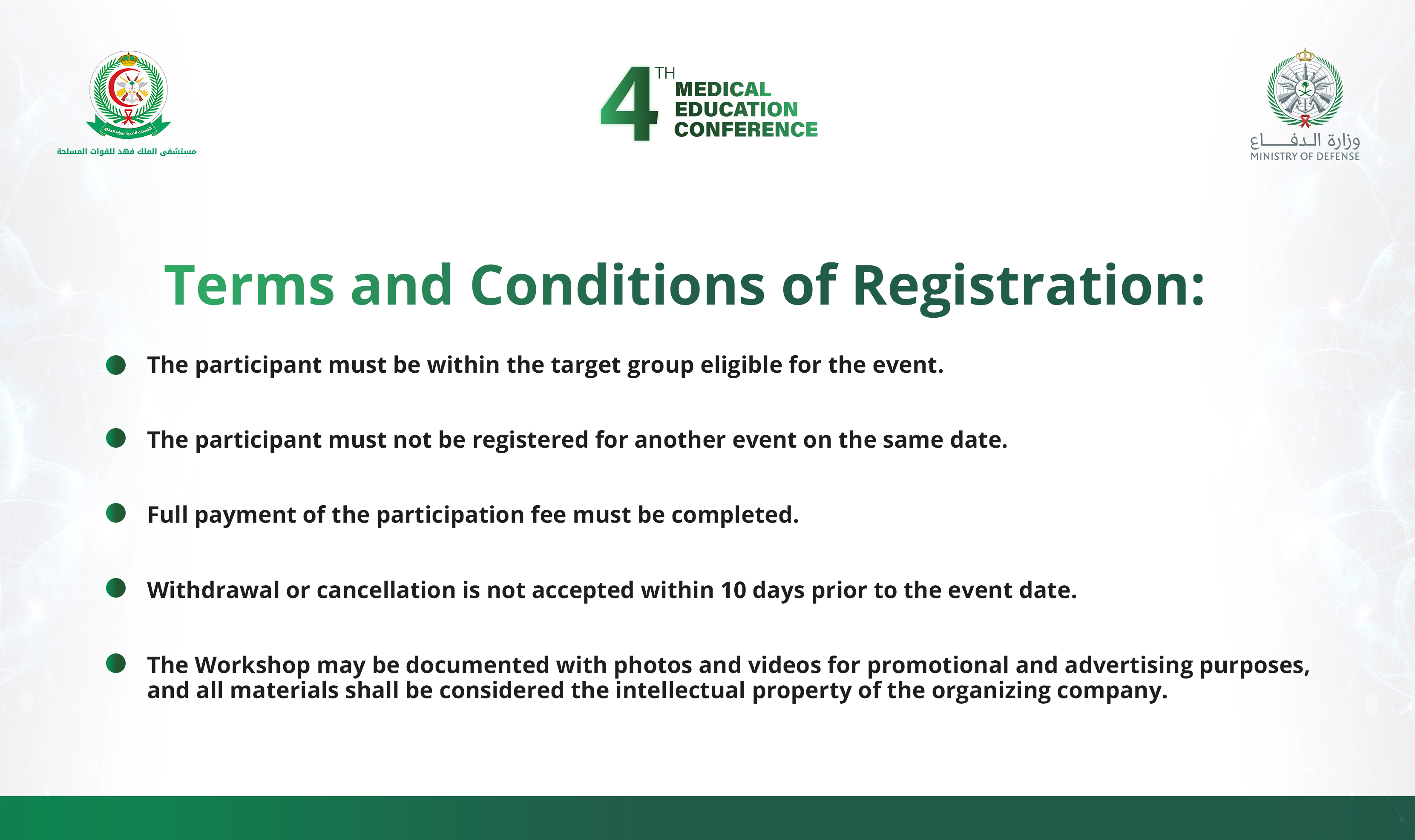 يسعدنا أن نرحب بكم في المؤتمر الرابع للتعليم الطبي، الذي يستضيفه مستشفى الملك للقوات المسلحة بجدة، ويهدف إلى الارتقاء بجودة التعليم الطبي، ودعم مسارات الابتكار، والتمكين، والاستدامة.
